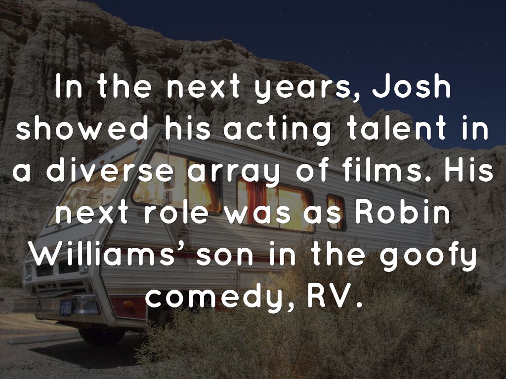 In the next years, Josh showed his acting talent in a diverse array of films. His next role was as Robin Williams’ son in the goofy comedy, RV.