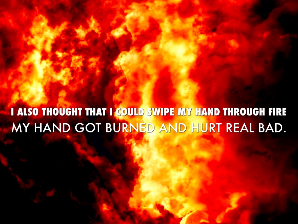 I ALSO THOUGHT THAT I COULD SWIPE MY HAND THROUGH FIRE