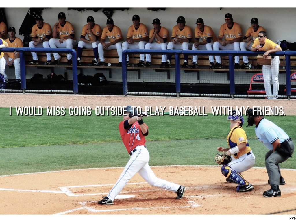 I WOULD MISS GOING OUTSIDE TO PLAY BASEBALL WITH MY FRIENDS.