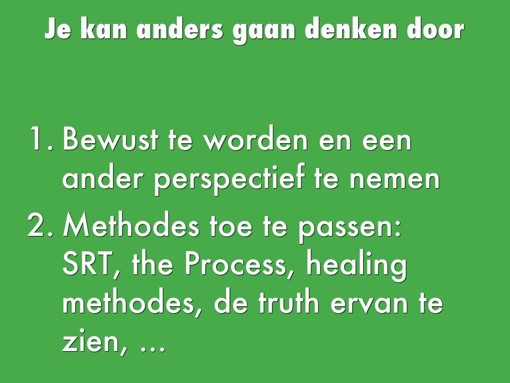 Methodes toe te passen: SRT, the Process, healing methodes, de truth ervan te zien, ...