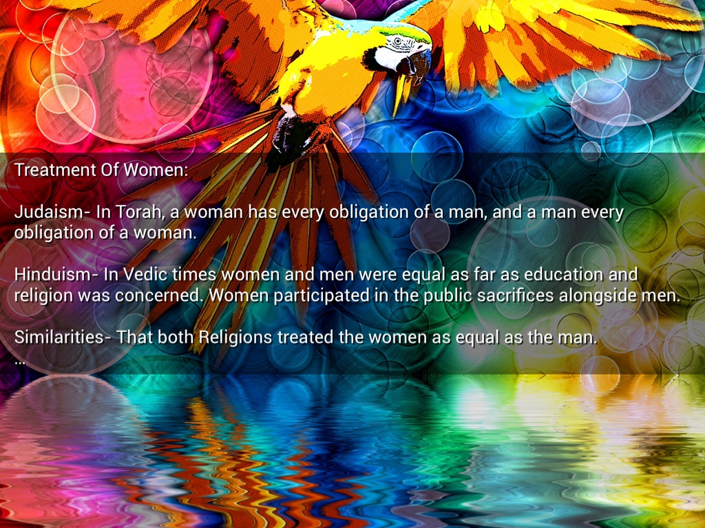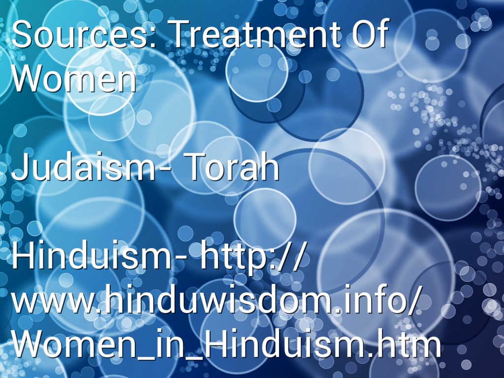 Hinduism- In Vedic times women and men were equal as far as education and religion was concerned. Women participated in the public sacrifices alongside men.