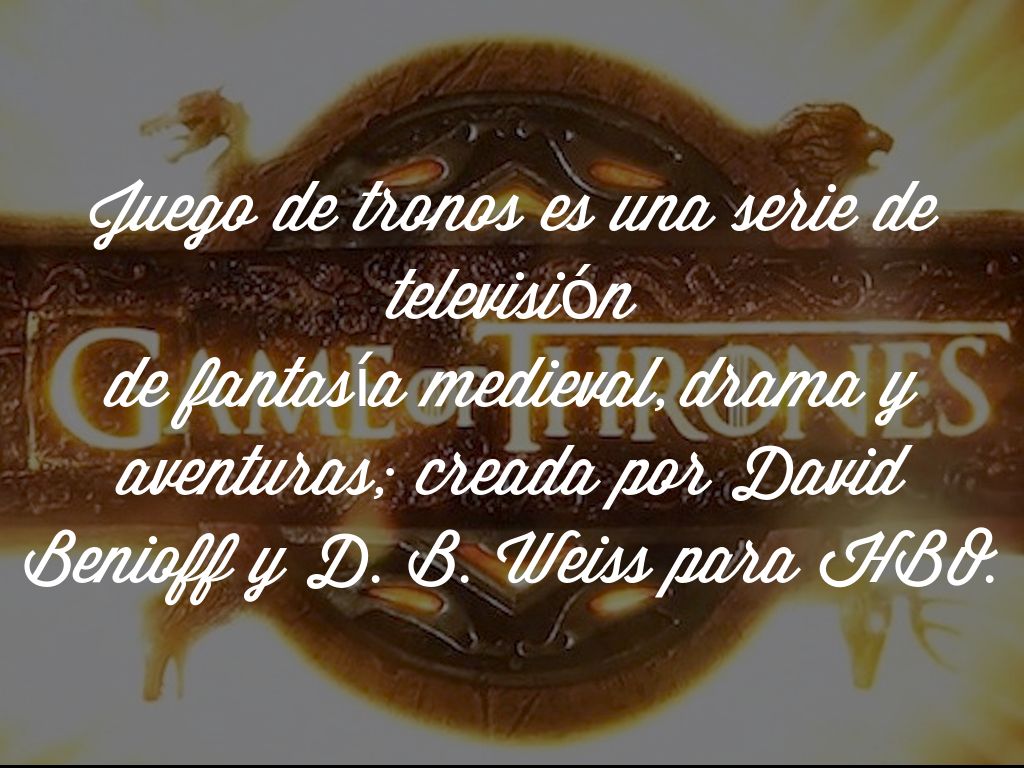 de fantasía medieval, drama y aventuras; creada por David Benioff y D. B. Weiss para HBO.