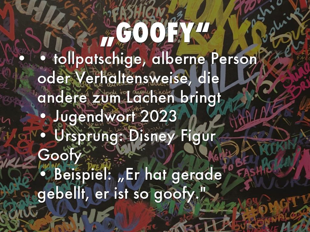 • Beispiel: „Er hat gerade gebellt, er ist so goofy."