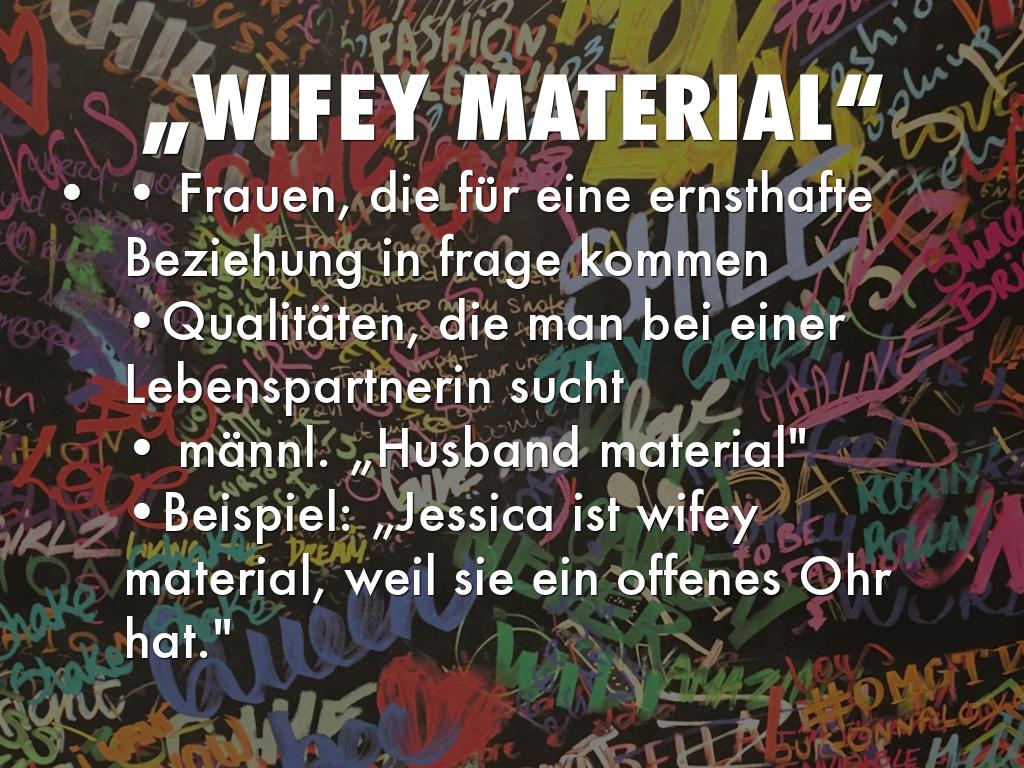 •Beispiel: „Jessica ist wifey material, weil sie ein offenes Ohr hat."