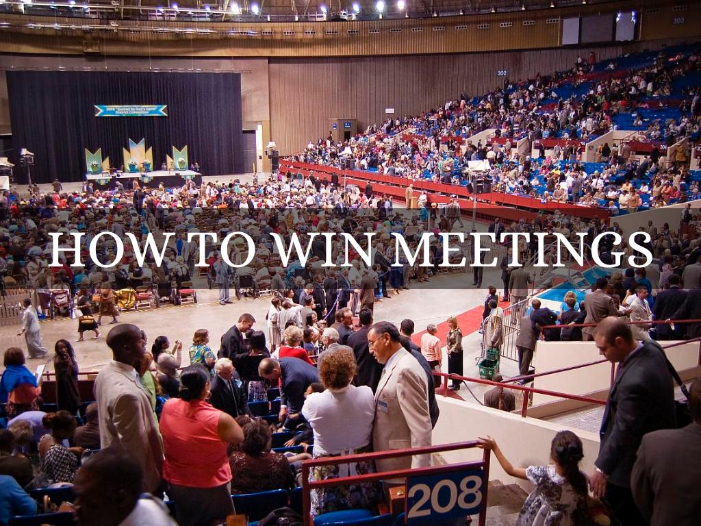 I predict that each and every one of you will have a need to win at a meeting some time in the future. Perhaps it's at a PTA meeting or a neighborhood association. Maybe you need to win because if you don't the school swimming team will be disbanded. Maybe the city wants to put a speed bump right in front of your house. I needed to win at a meeting a couple of months ago - the old jazz society was going bankrupt and they were organizing a new group. I knew with all my heart that the new group needed to have both jazz & swing in the name - it would allow us to double the size of our prospect pool by including swing dancers in our audience. I had to be effective and get my suggestion adopted. The new name is the Capital City Jazz & Swing Association.