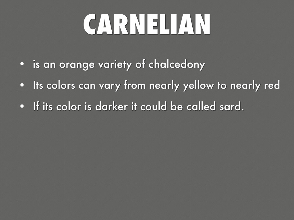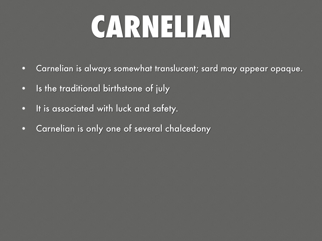 Carnelian is always somewhat translucent; sard may appear opaque.