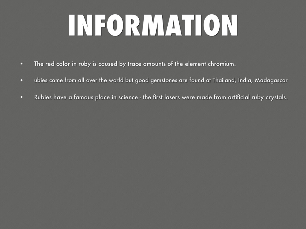Rubies have a famous place in science - the first lasers were made from artificial ruby crystals.
