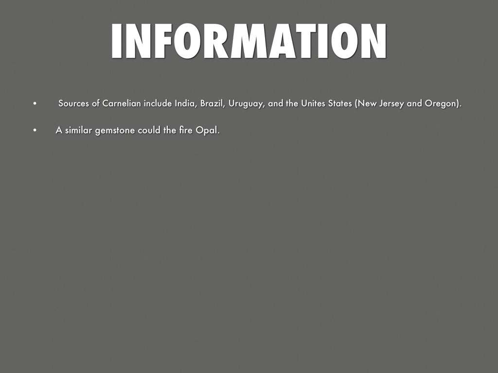 Sources of Carnelian include India, Brazil, Uruguay, and the Unites States (New Jersey and Oregon).
