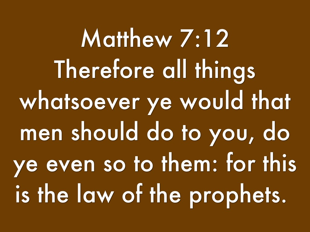 Therefore all things whatsoever ye would that men should do to you, do ye even so to them: for this is the law of the prophets.
