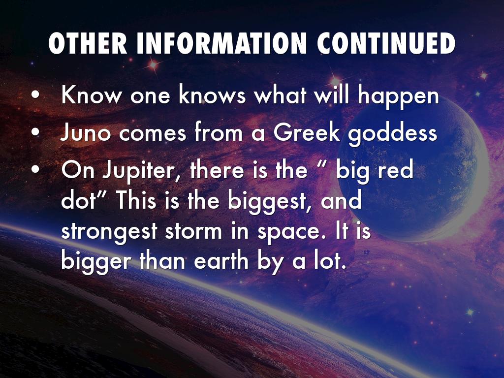 On Jupiter, there is the “ big red dot” This is the biggest, and strongest storm in space. It is bigger than earth by a lot.