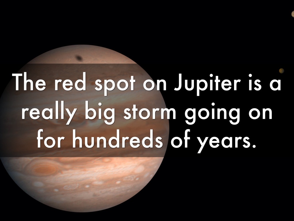 The red spot on Jupiter is a really big storm going on for hundreds of years.