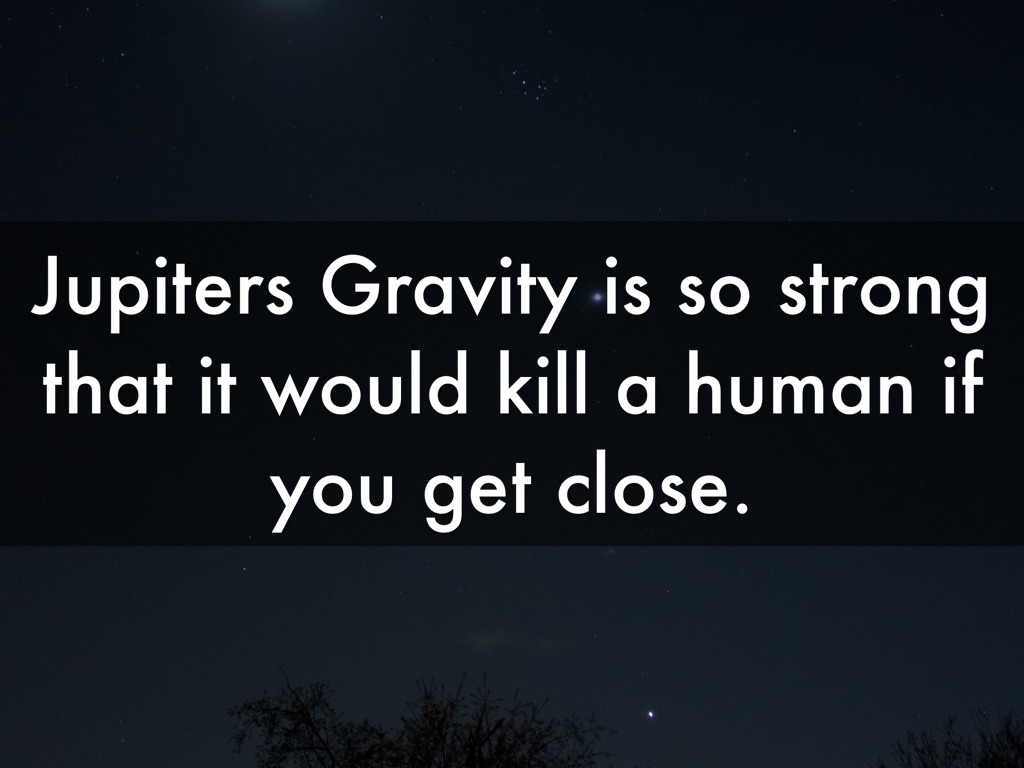 Jupiters Gravity is so strong that it would kill a human if you get close.