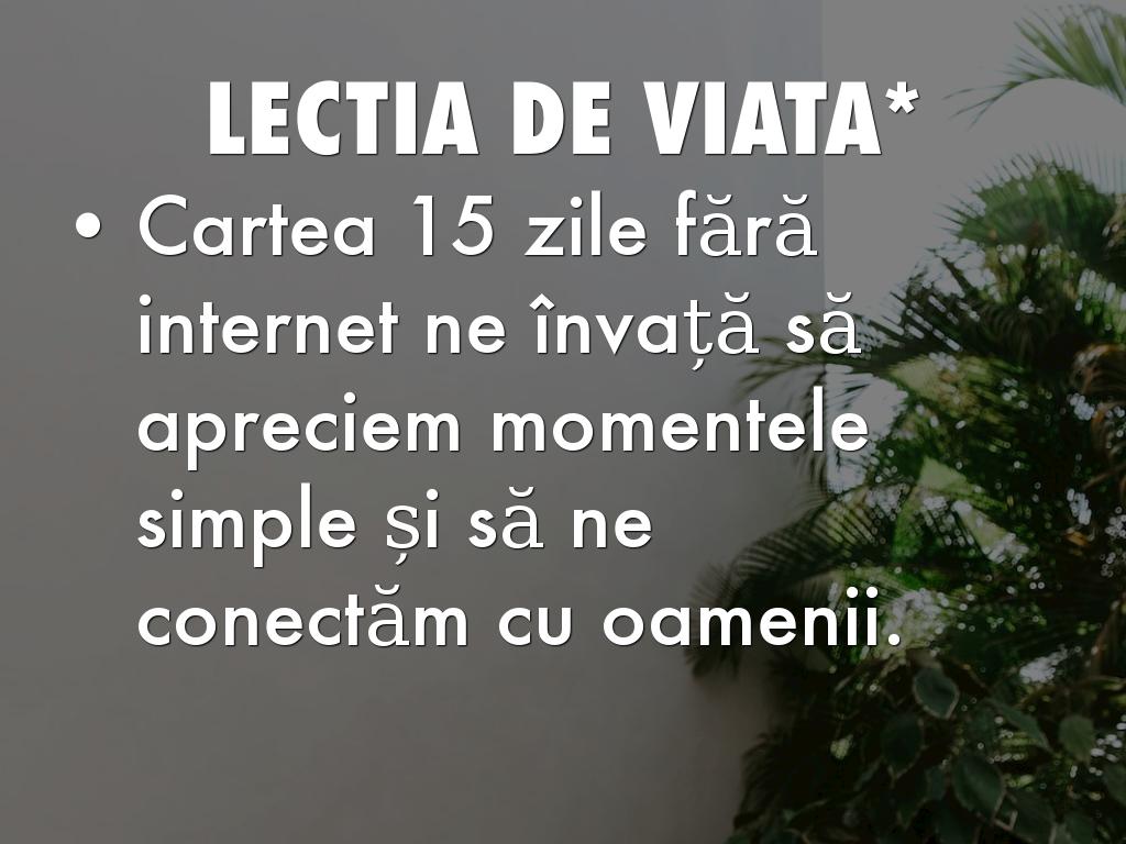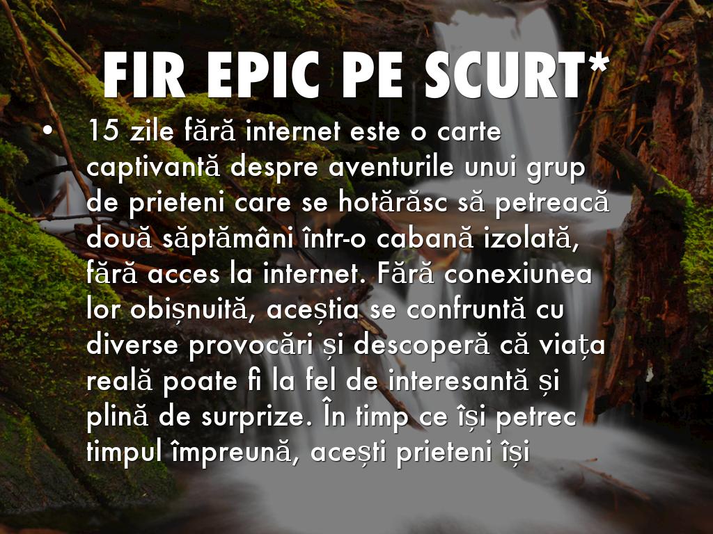 15 zile fără internet este o carte captivantă despre aventurile unui grup de prieteni care se hotărăsc să petreacă două săptămâni într-o cabană izolată, fără acces la internet. Fără conexiunea lor obișnuită, aceștia se confruntă cu diverse provocări și descoperă că viața reală poate fi la fel de interesantă și plină de surprize. În timp ce își petrec timpul împreună, acești prieteni își dezvoltă relațiile, descoperă noi pasiuni și învață să se bucure de momentele simple. În cele din urmă, această experiență îi schimbă și îi ajută să înțeleagă importanța autenticității și a conexiunii umane.