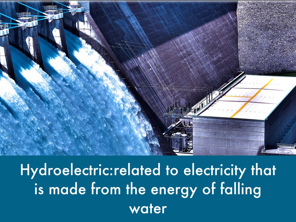 Hydroelectric:related to electricity that is made from the energy of falling water