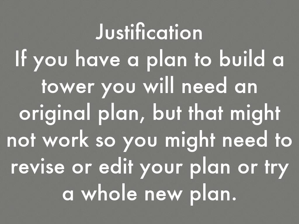 If you have a plan to build a tower you will need an original plan, but that might not work so you might need to revise or edit your plan or try a whole new plan.