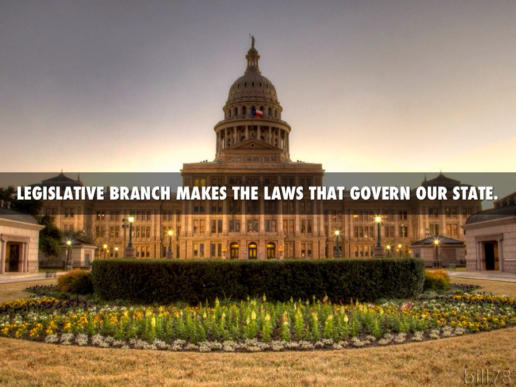 LEGISLATIVE BRANCH MAKES THE LAWS THAT GOVERN OUR STATE.
