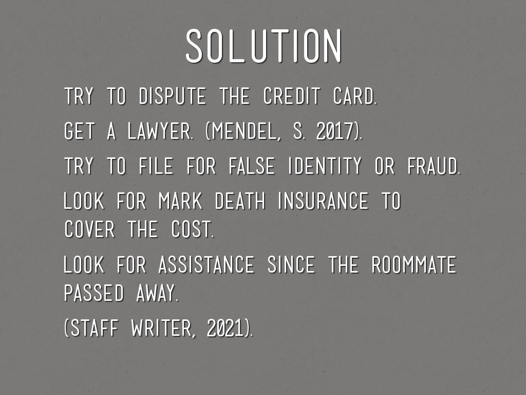 • look for assistance since the roommate passed away.