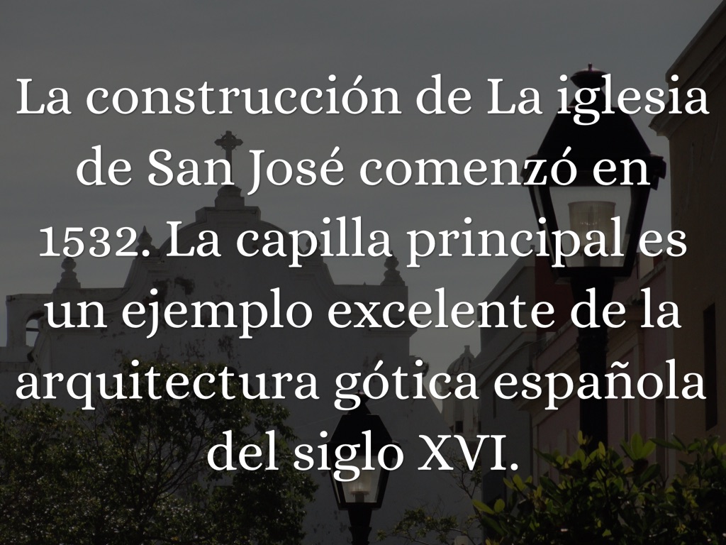 La construcción de La iglesia de San José comenzó en 1532. La capilla principal es un ejemplo excelente de la arquitectura gótica española del siglo XVI.