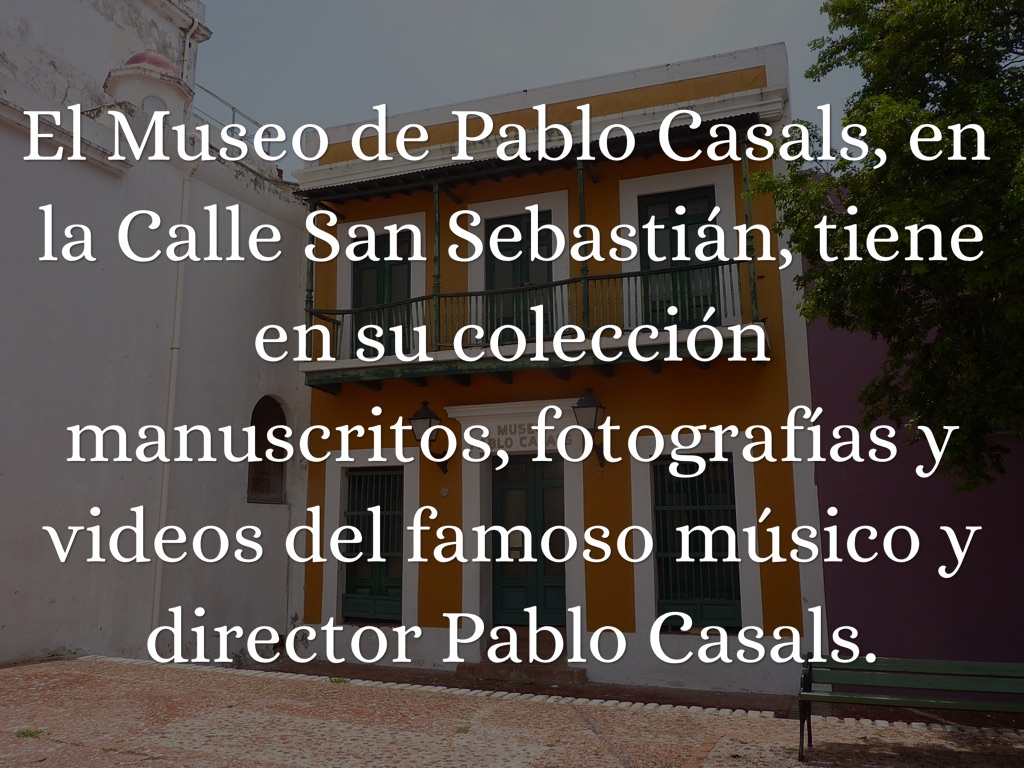 El Museo de Pablo Casals, en la Calle San Sebastián, tiene en su colección manuscritos, fotografías y videos del famoso músico y director Pablo Casals.