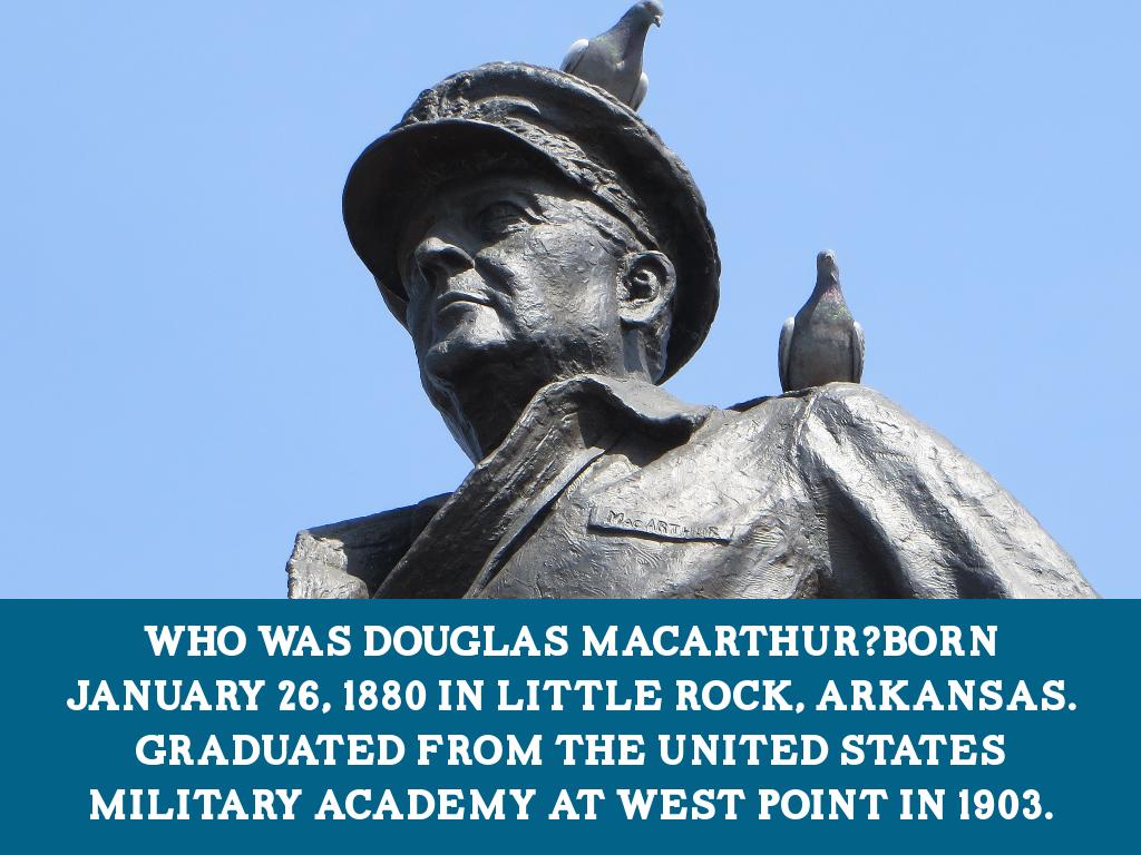 Who was Douglas MacArthur?Born January 26, 1880 in Little Rock, Arkansas.