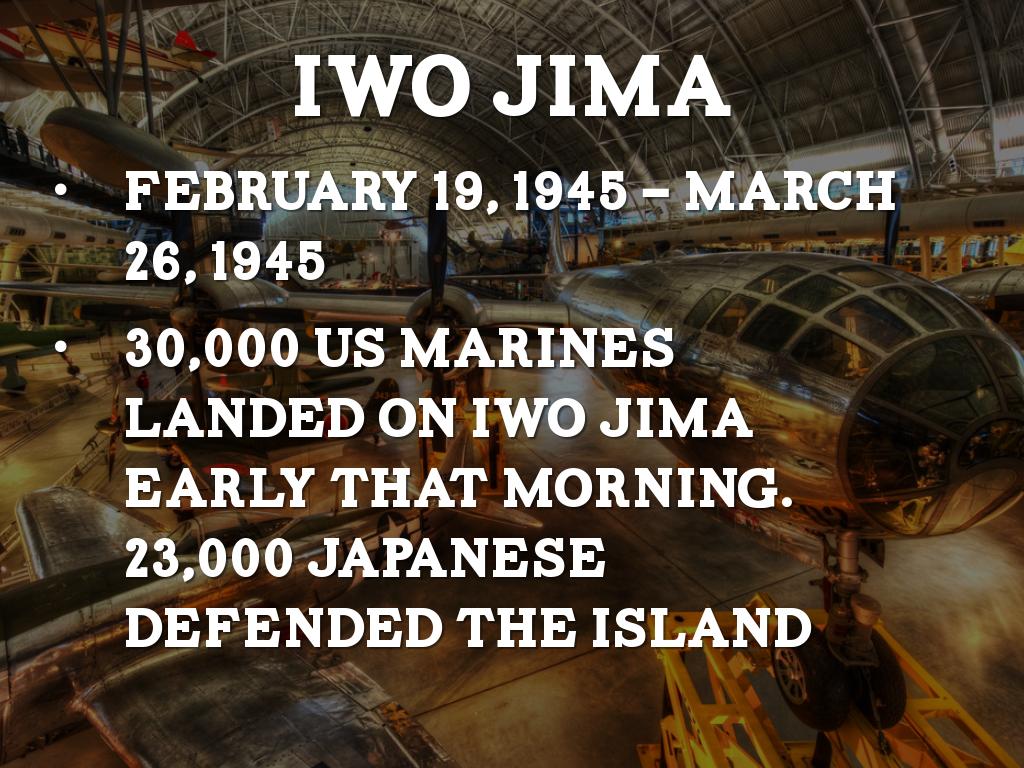 • 30,000 US Marines landed on Iwo Jima early that morning. 23,000 Japanese defended the island
