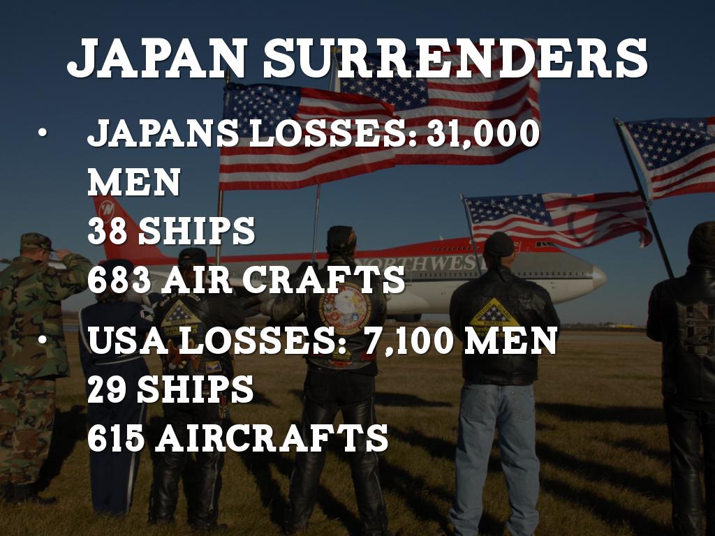 • Japans Losses: 31,000 men 38 ships 683 air crafts