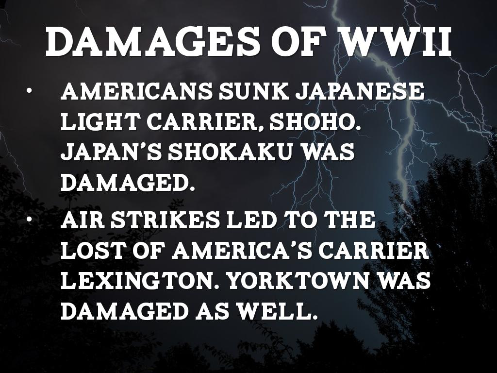 • Air strikes led to the lost of America’s carrier Lexington. Yorktown was damaged as well.