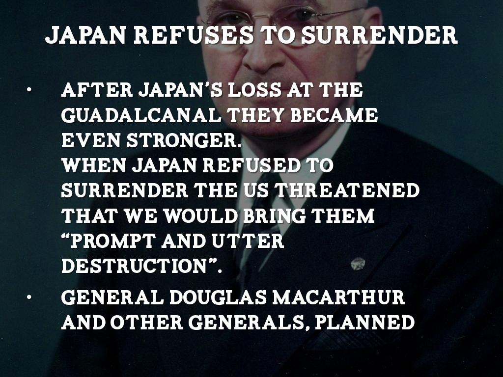 • After Japan’s loss at the Guadalcanal they became even stronger. When Japan refused to surrender the US threatened that we would bring them “prompt and utter destruction”.