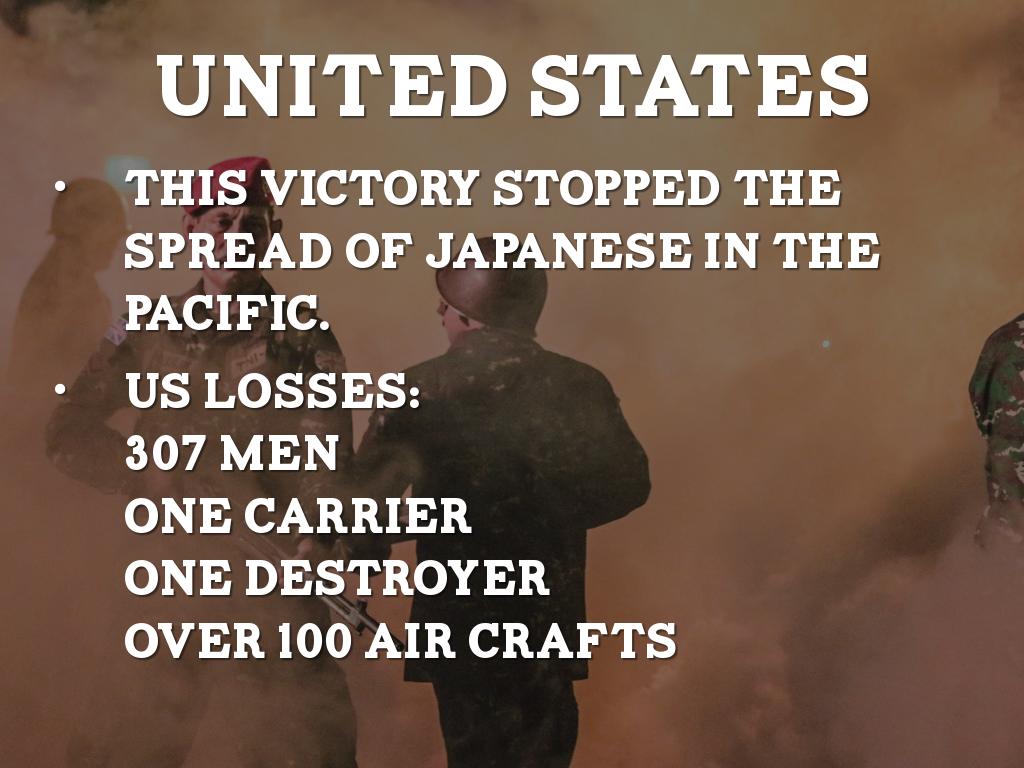 • US losses: 307 men one carrier one destroyer over 100 air crafts
