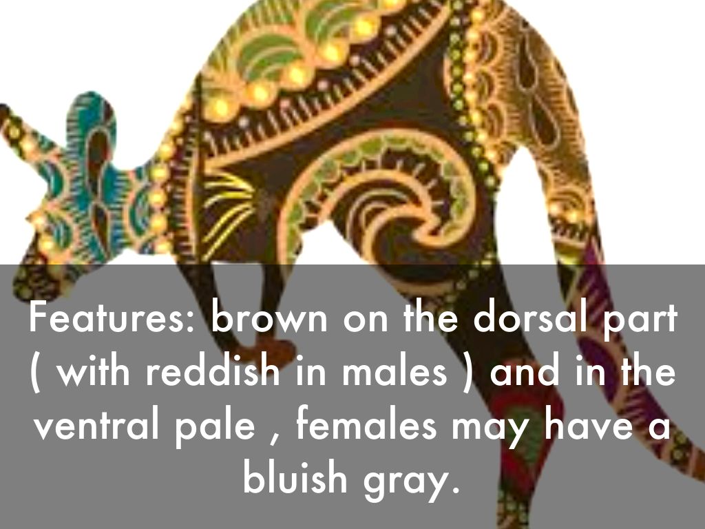 Features: brown on the dorsal part ( with reddish in males ) and in the ventral pale , females may have a bluish gray.