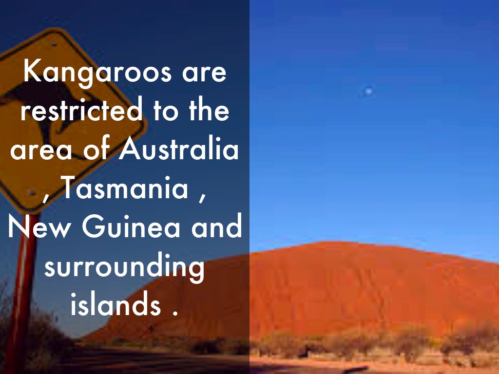 Kangaroos are restricted to the area of Australia , Tasmania , New Guinea and surrounding islands .