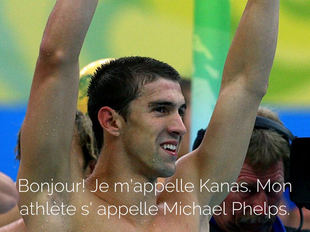 Bonjour! Je m'appelle Kanas. Mon athlète s' appelle Michael Phelps.