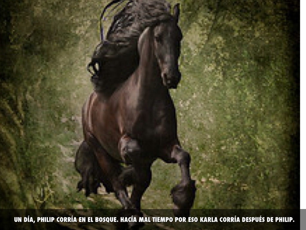 UN DÍA, PHILIP CORRÍA EN EL BOSQUE. HACÍA MAL TIEMPO POR ESO KARLA CORRÍA DESPUÉS DE PHILIP.