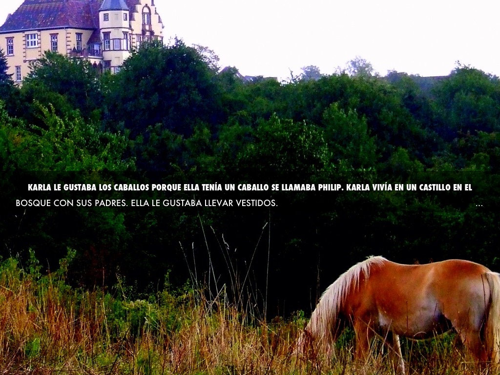 KARLA LE GUSTABA LOS CABALLOS PORQUE ELLA TENÍA UN CABALLO SE LLAMABA PHILIP. KARLA VIVÍA EN UN CASTILLO EN EL