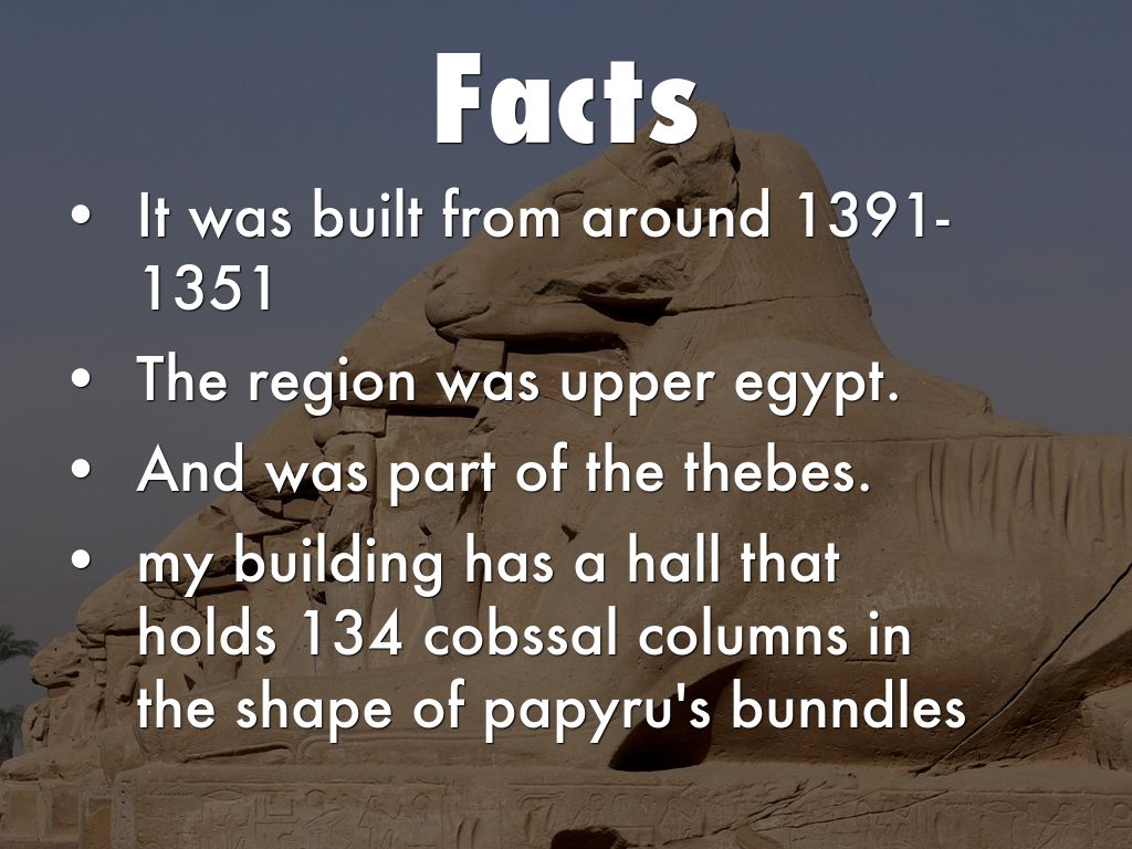 • my building has a hall that holds 134 cobssal columns in the shape of papyru's bunndles