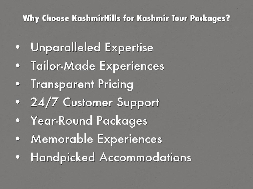Unparalleled Expertise: KashmirHills boasts extensive knowledge and experience in curating exceptional Kashmir tour packages. We understand the region's nuances to create unforgettable travel experiences.