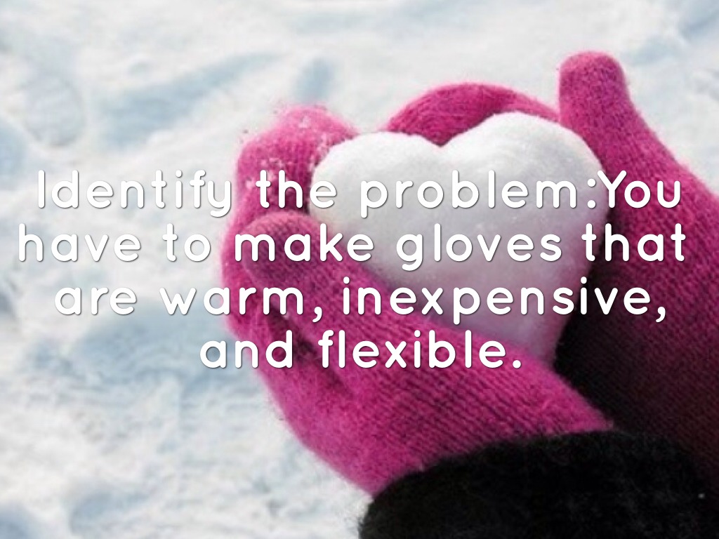 Identify the problem:You have to make gloves that are warm, inexpensive, and flexible.