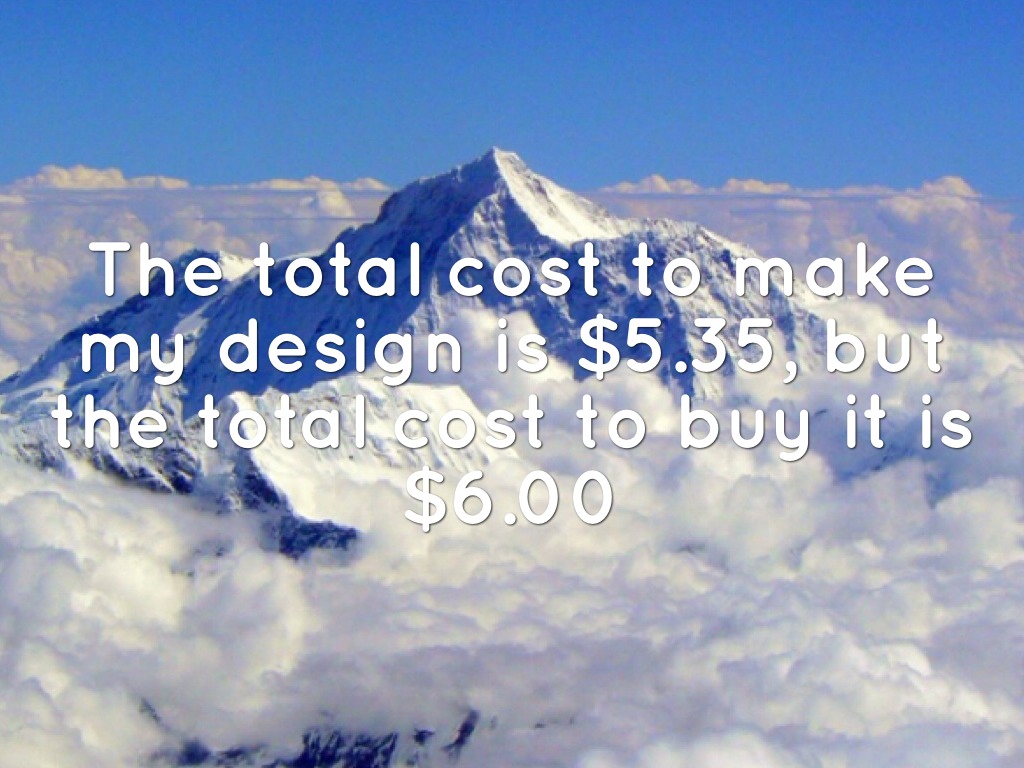 The total cost to make my design is $5.35, but the total cost to buy it is $6.00