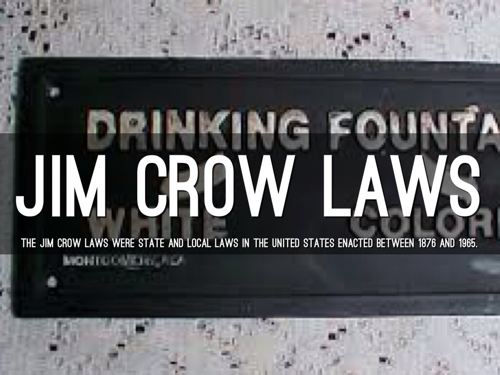 The Jim Crow laws were state and local laws in the United States enacted between 1876 and 1965.