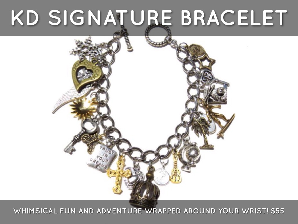 This bracelet is available in all silver tones. It is 7 1/2 inches but can be ordered at any length. The metals used in the bracelet are all hypoallergenic base metal.