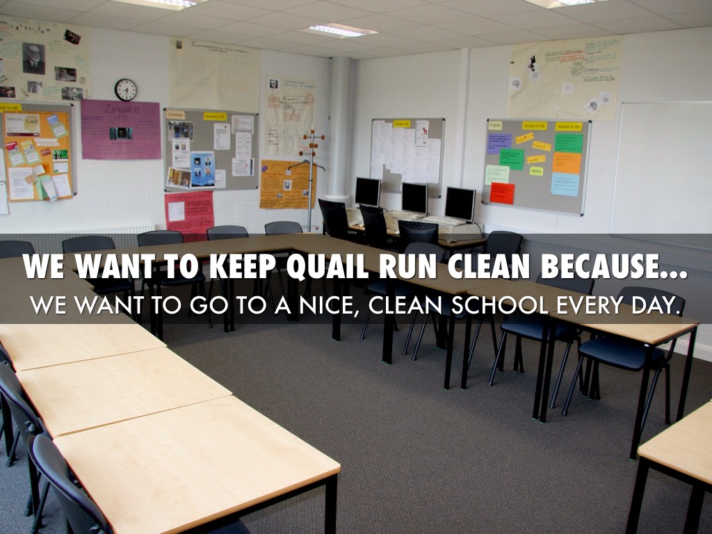 WE WANT TO KEEP QUAIL RUN A GOOD SCHOOL, CLEAN, AND TIDY.