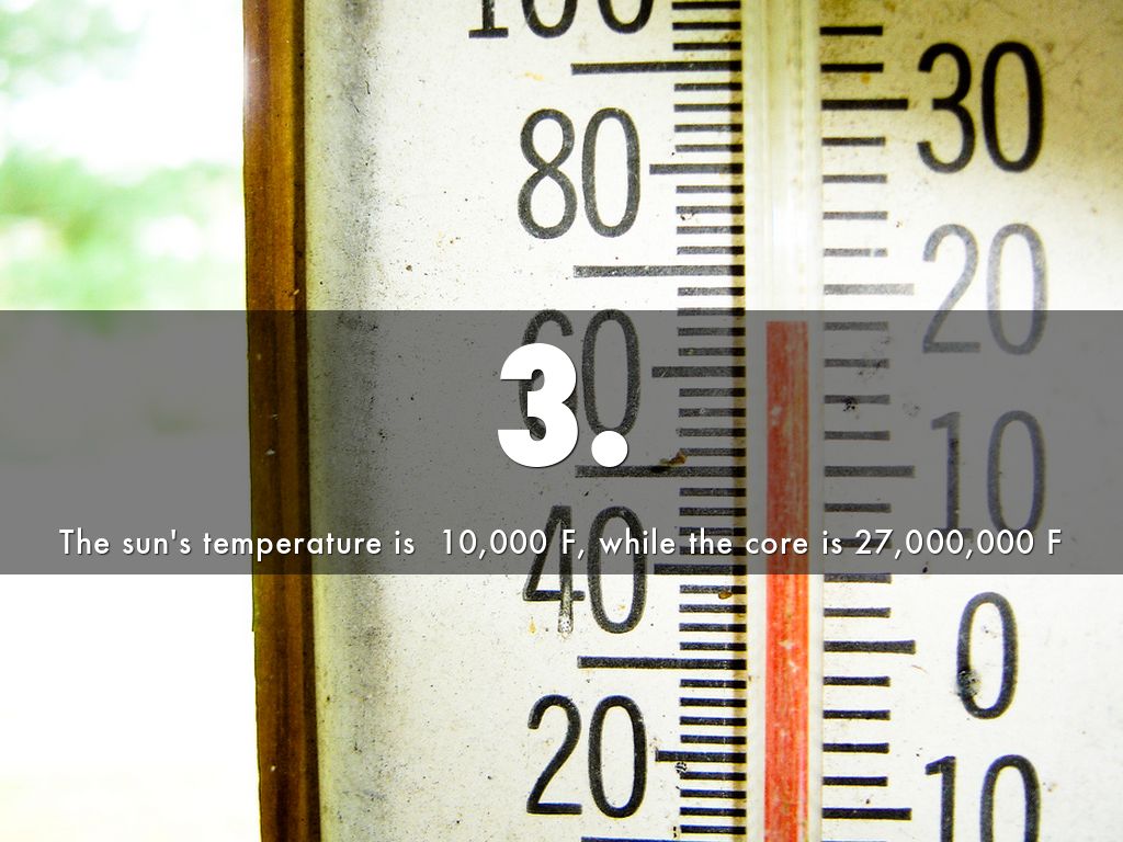 The sun's temperature is 10,000 F, while the core is 27,000,000 F