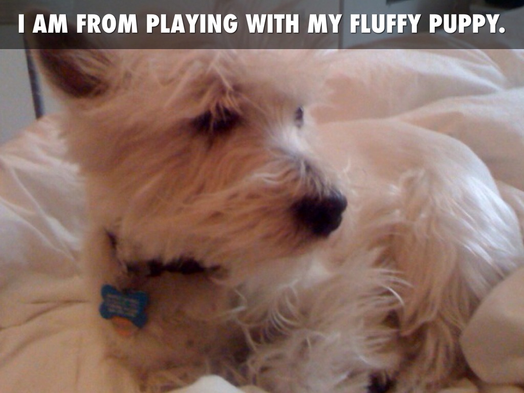I AM FROM PLAYING WITH MY FLUFFY PUPPY.