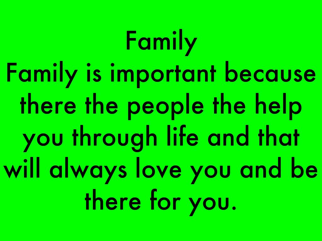 Family is important because there the people the help you through life and that will always love you and be there for you.