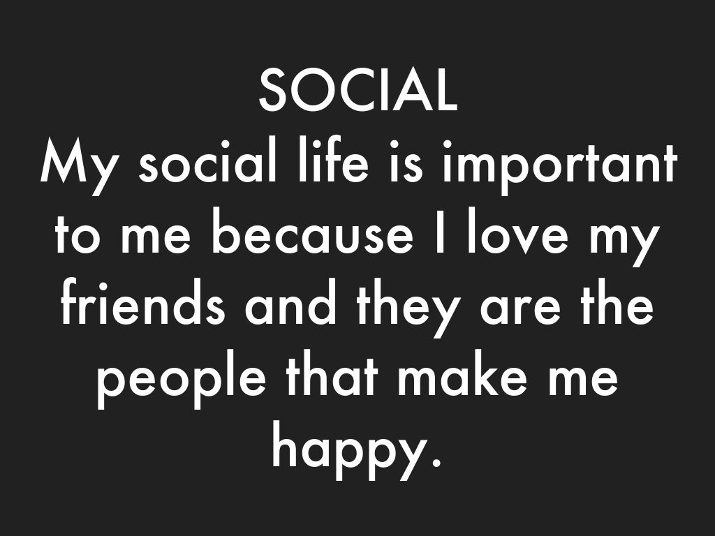 My social life is important to me because I love my friends and they are the people that make me happy.