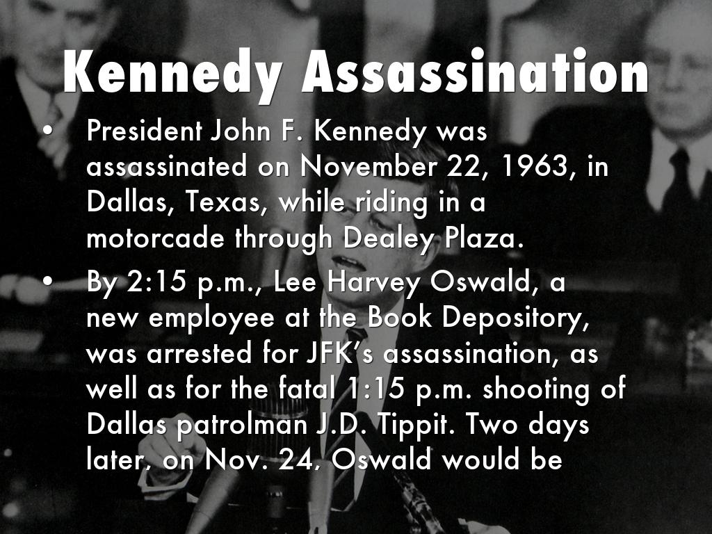 President John F. Kennedy was assassinated on November 22, 1963, in Dallas, Texas, while riding in a motorcade through Dealey Plaza.