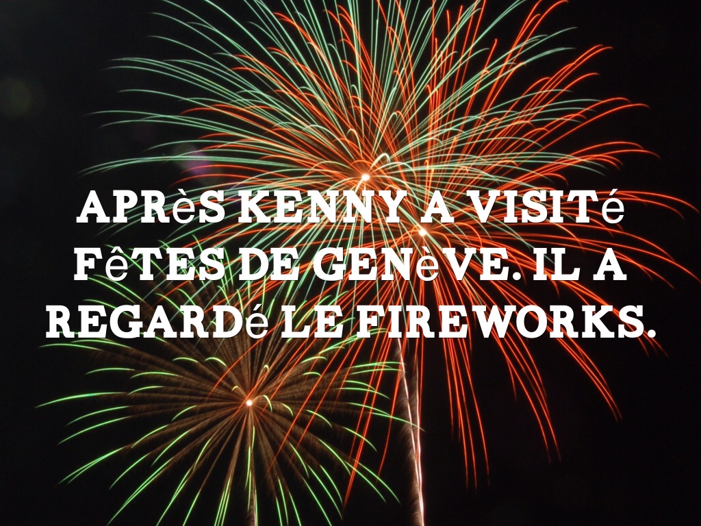 Après kenny a visité Fêtes de Genève. Il a regardé le fireworks.