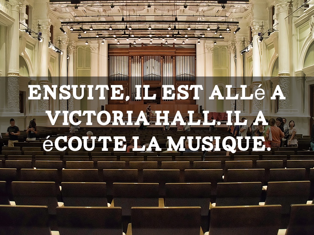 Ensuite, il est allé a victoria hall. Il a écoute la musique.