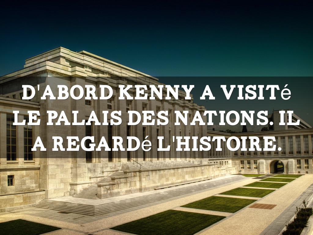 D'abord Kenny a visité le palais des nations. Il a regardé l'histoire.