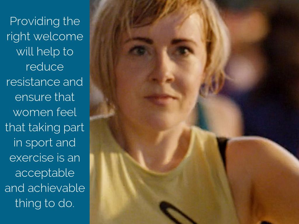 Providing the right welcome will help to reduce resistance and ensure that women feel that taking part in sport and exercise is an acceptable and achievable thing to do.